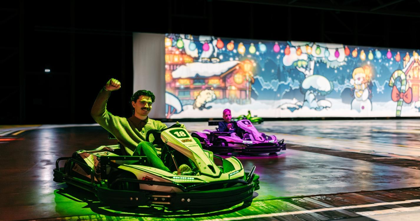 Het is karten, want je rijdt in een echte elektrische kart en krijgt een puur gevoel van snelheid. Een leuk extraatje is dat de karts uitgerust zijn met slimme technologie. Je hoeft dus geen helm te dragen. Zo ondervind je de snelheid aan den lijve, met je haren in de wind!