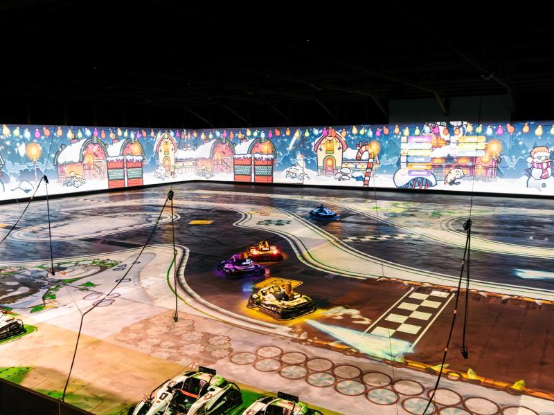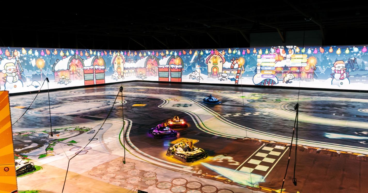 Dankzij de projectie van de decors op de muren rondom u wordt u volledig ondergedompeld in de actie. Elke bocht, elk obstakel en elke spelmodus krijgt een spectaculaire dimensie, waardoor u zich meer dan ooit in het hart van het circuit waant.