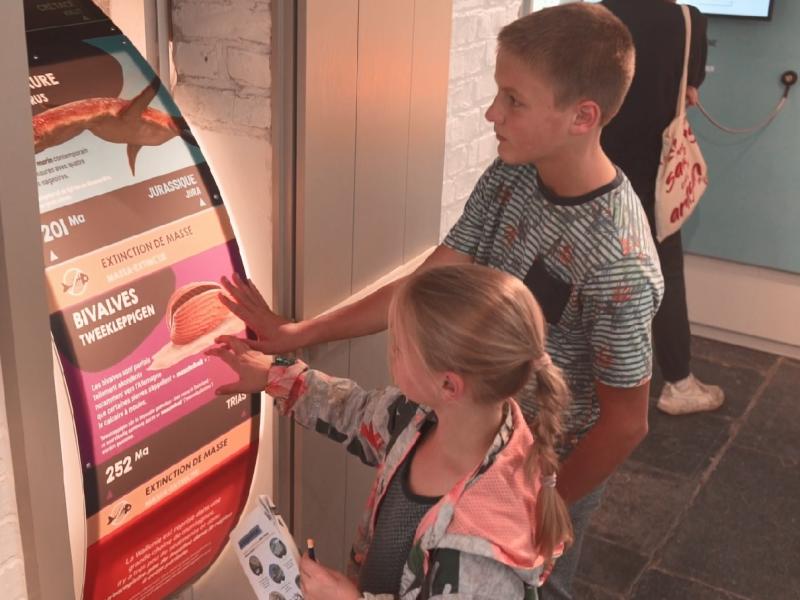Maar dat is nog maar het begin van je avontuur. De interactieve tentoonstelling nodigt je uit voor een zintuiglijke reis door verschillende geologische tijdperken. Voelen, observeren, luisteren… Elk zintuig wordt ingeschakeld om je een unieke ervaring te doen beleven.