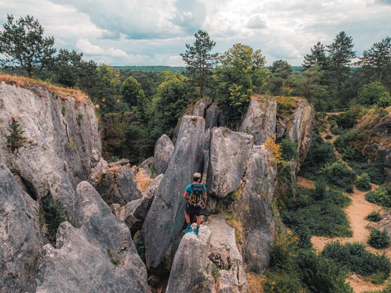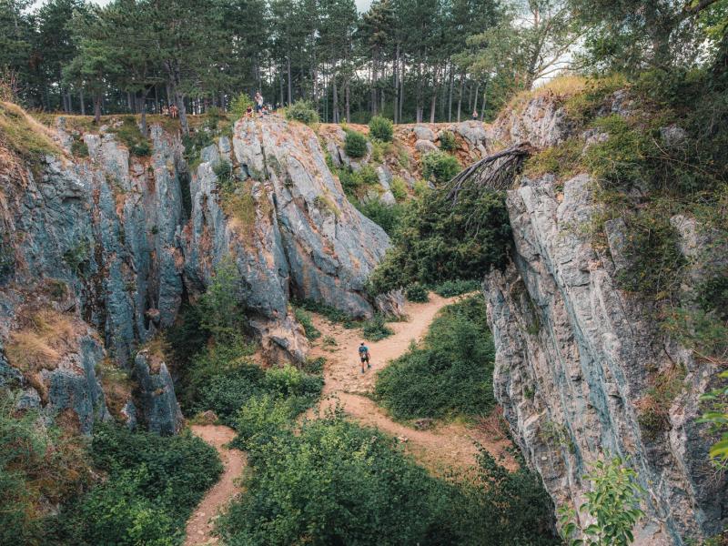 In Nismes, een dorp bij Viroinval, kom je ogen te kort om een uitzonderlijk geologisch verschijnsel te bewonderen: het resultaat van duizenden jaren erosie door de regen in de kalksteen. Je waant je plots op een andere planeet als je voor het eerst de gigantische kloof ziet die de Fondry des Chiens in het groene landschap boorde.