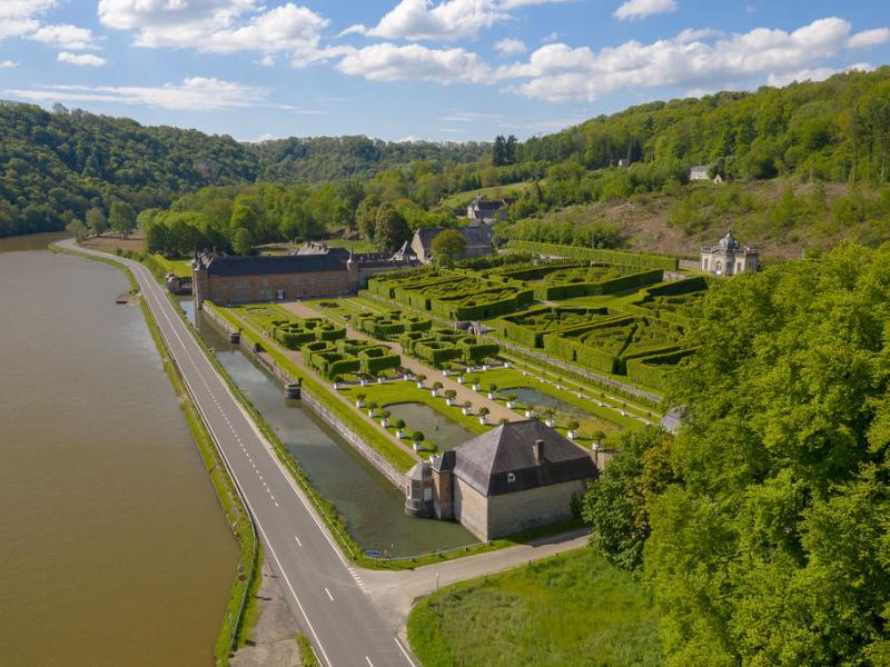 Het imposante Kasteel van Freÿr ligt langs de Maas en is knus genesteld tussen de glooiende heuvels. Oorspronkelijk was het een versterkte burcht, maar in 1554 werd die verwoest. Vervolgens verrees op deze plek een renaissancekasteel. In de loop van de zeventiende en achttiende eeuw evolueerde de stijl en groeide het kasteel geleidelijk. Wanneer je het Kasteel van Freÿr ziet, kun je niet anders dan onder de indruk zijn van dit immense gebouwencomplex in de weelderige natuur. Naast de statige architectuur zelf is ook het klassieke, verfijnde interieur een lust voor het oog. In de kamers en zalen bewonder je meubels en decoratiestukken die door de tijd heen zijn verzameld door de twintig generaties die hier hebben gewoond.