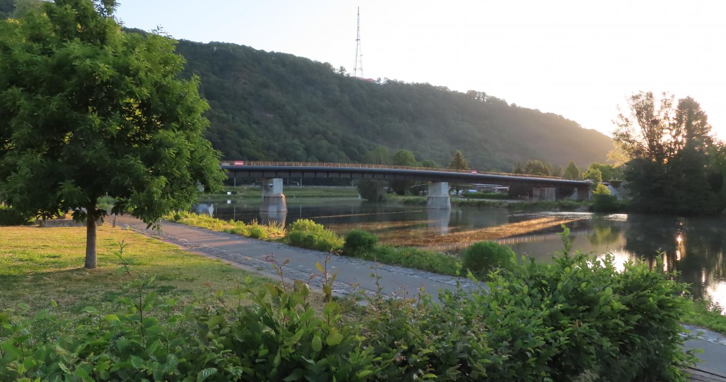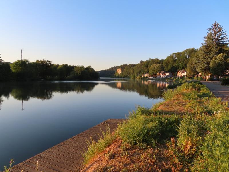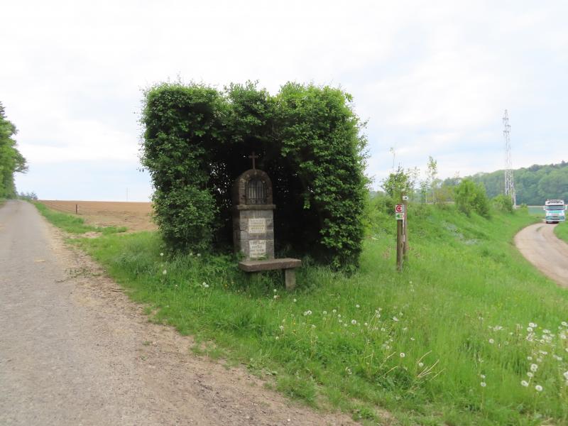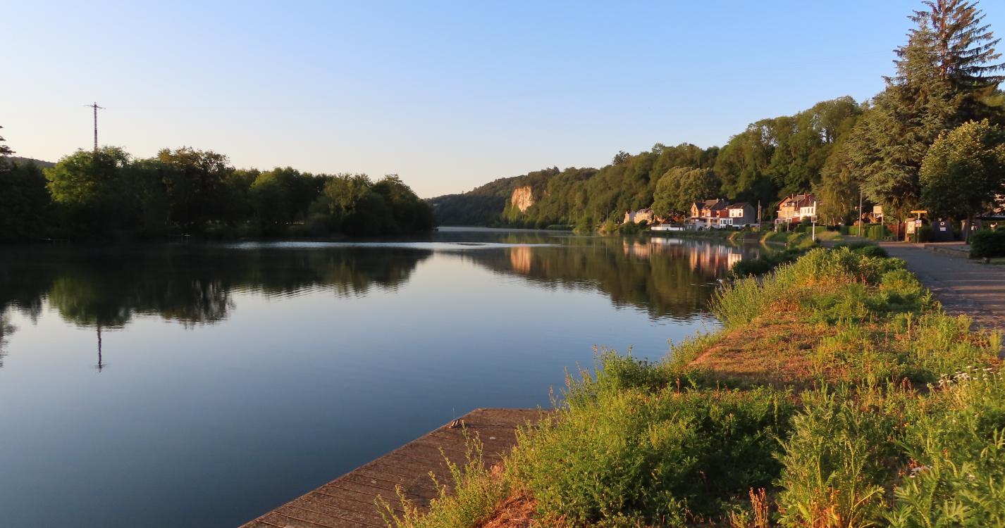 Op het plein moet u zich zo opstellen dat u rechts een waterrad en links de kerk van St-Antoine hebt. Ga rechtdoor over de macadamweg die naar rechts buigt voordat u aan een lichte klim begint. Na 400 m, op de Y-splitsing, bij de kapel die aan de Maagd gewijd is en Chapelle du Berger heet, gaat u rechtsaf. Dit grindpad loopt de velden in en gaat onder een hoogspanningsleiding door. Bij de volgende Y-splitsing gaat u verder over het pad dat licht naar rechts gaat en het bos ingaat. Ongeveer 1 km verder in het bos, bij het kruispunt van de kapel Saint-Hubert, neemt u het pad naar links. Na 100m gaat u rechtdoor naar beneden, en 20m later, bij de Villa Thiran, neemt u het pad rechts, dat 400m lang langs een bos loopt, achter de huizen van Warnant, en u bij de Ruelle Colleau brengt, die u afdaalt door naar links te buigen. Onderaan, na 300m, bij de T-splitsing, rechtsaf. Bij de Union Warnantaise hal slaat u links af (het zou jammer zijn als u niet van tevoren een korte ronde van 200 m had gemaakt naar de fontein van Ste-Adèle en de kapel van N.-D de Beauraing). Na de kleine brug, de eerste weg rechts (rue du Prince) negeren, en de tweede (rue de Quincay, genoemd naar het Poitevin dorp dat een jumelage heeft met Warnant) bij de kerk nemen. Op het kruispunt van de grote boerderij, ga links. Volg de weg gedurende 600m en sla links af aan het kruispunt van de kapel N.-D de Hal. Bij de volgende T-splitsing neemt u een pad dat over de weg klimt en langs de zijkant van een huis loopt. Dit pad wordt grasland. Het wordt breder als het samenkomt met een ander bij een vrijstaand huis. Ga achter dit huis, dan langs de Corbais boerderij. Negeer bij een lange bocht naar links de paden rechts die het bos ingaan en neem het pad rechts naast een schuurtje dat tussen velden en onder een hoogspanningsleiding doorgaat. Bij de T-splitsing op het platteland gaat u linksaf in de richting van een klein bos. Ga door het bos en naar beneden naar een boerderij. Ga er links omheen en sla dan rechtsaf om de Rue des Campagnes à Hun in te gaan. Vlakbij de kerk Saint-Christophe slaat u rechtsaf de nationale weg op richting Dinant. Na 100m, de weg oversteken op de doorgang en de rue d'En-Bas nemen om op het jaagpad uit te komen. Daar slaat u linksaf om de Maas te volgen richting Namen. Bij het naderen van de brug van Godinne, ter hoogte van het ballenpark van Rouillon, slaat u linksaf om de grote weg op te gaan en over te steken. Ga rechtdoor de Chemin des Forges in. Neem aan het eind van deze macadamweg rechts de reeks treden, sla linksaf om via de hoofdweg en vervolgens linksaf via de rue de l'église terug te keren naar het vertrekpunt. Vervolgens komt u langs de Jardins d'Annevoie en het kasteel.
