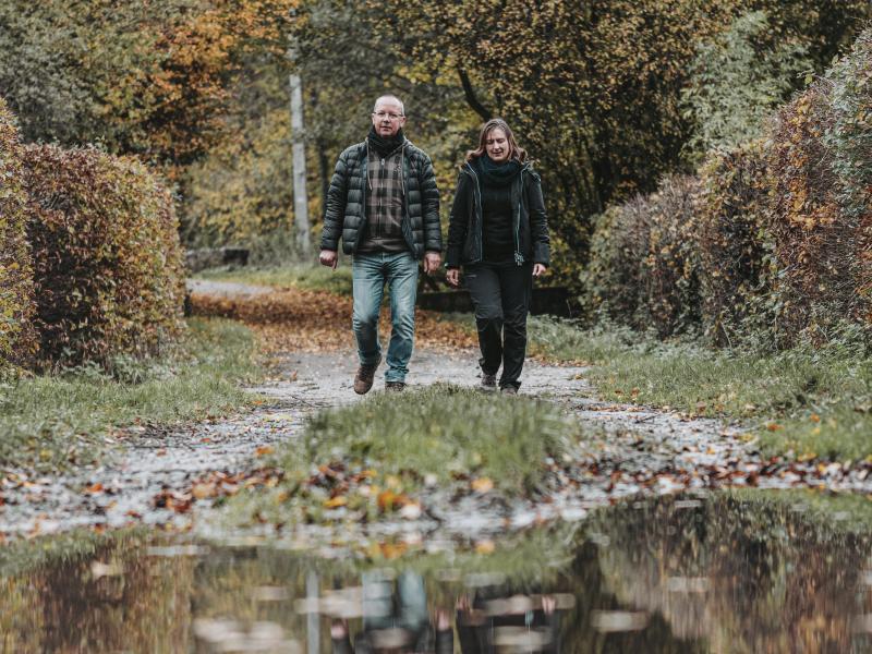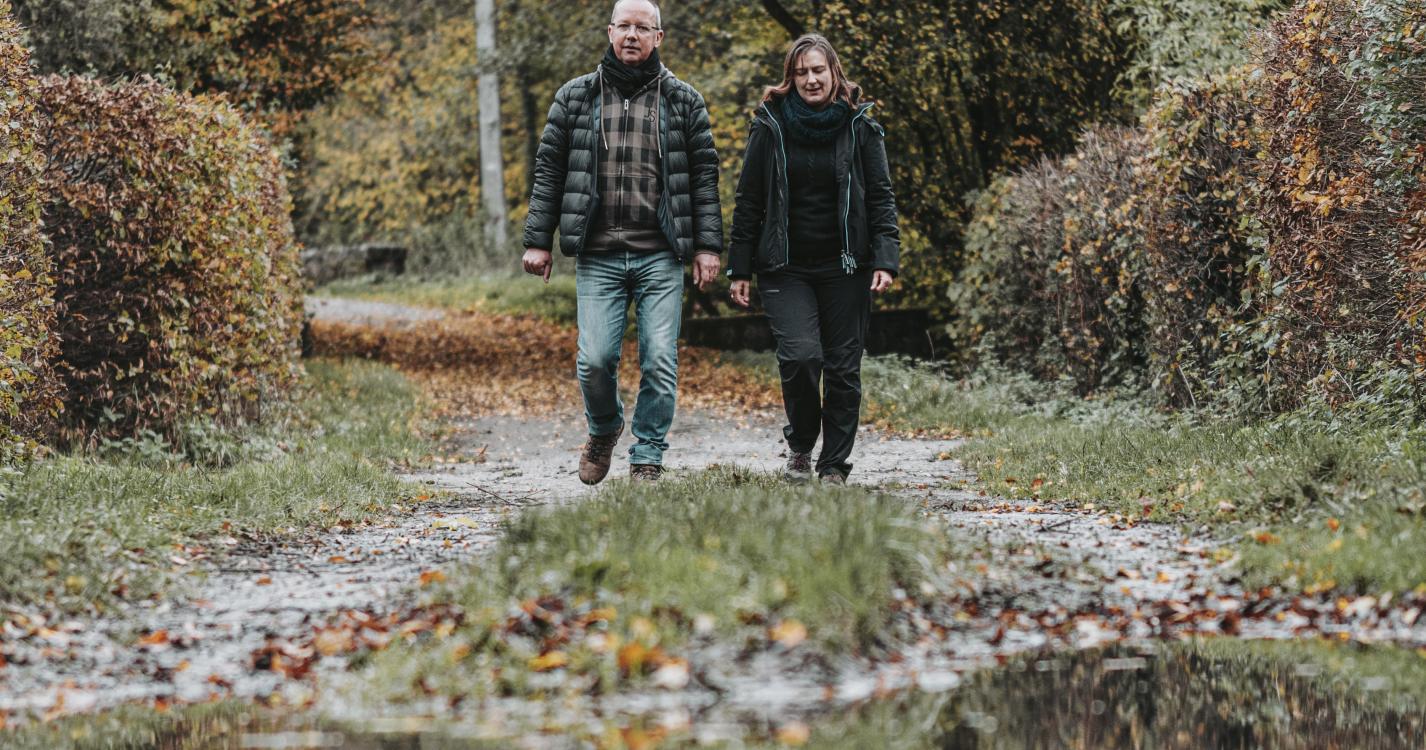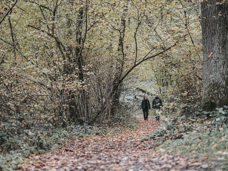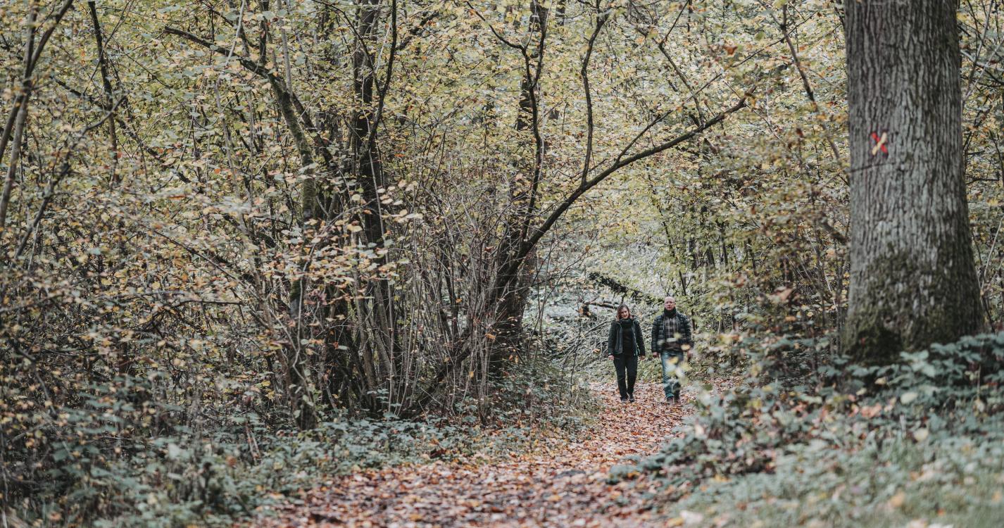 In het dorp Pry loopt deze wandeling zowel door de straten als de bossen, langs een kapel en een bijzondere plek zoals de pomp op de Place du Mayeur. Ter hoogte van de spoorweg, voor de steengroeve, staan kalkovens uit de 19e eeuw uitgehouwen in kalkmassief. Wanneer het parcours Pry verlaat gaat het verder in de Cambierbossen. Na de bossen kunt u op de heuvels genieten van een schitterend uitzicht op Walcourt en de basiliek. In het bos van Taille Chandelle loopt u door een natuurlijke schuilplaats voor de bescherming van meerdere vogel- en insectensoorten, zoals vlinders. De terugtocht naar het dorp loopt langs ‘Al Rotche’, een rotsachtig voorgebergte waar een Belgisch-Romeinse schuilplaats gevestigd was.