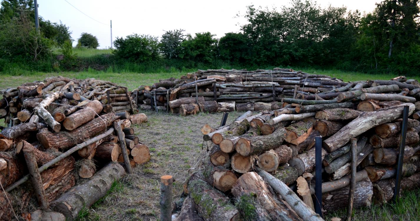 -> le sentier est praticable mais peut être évité en restant sur la route jusqu'au sommet de la côte, puis à gauche le long du bois.