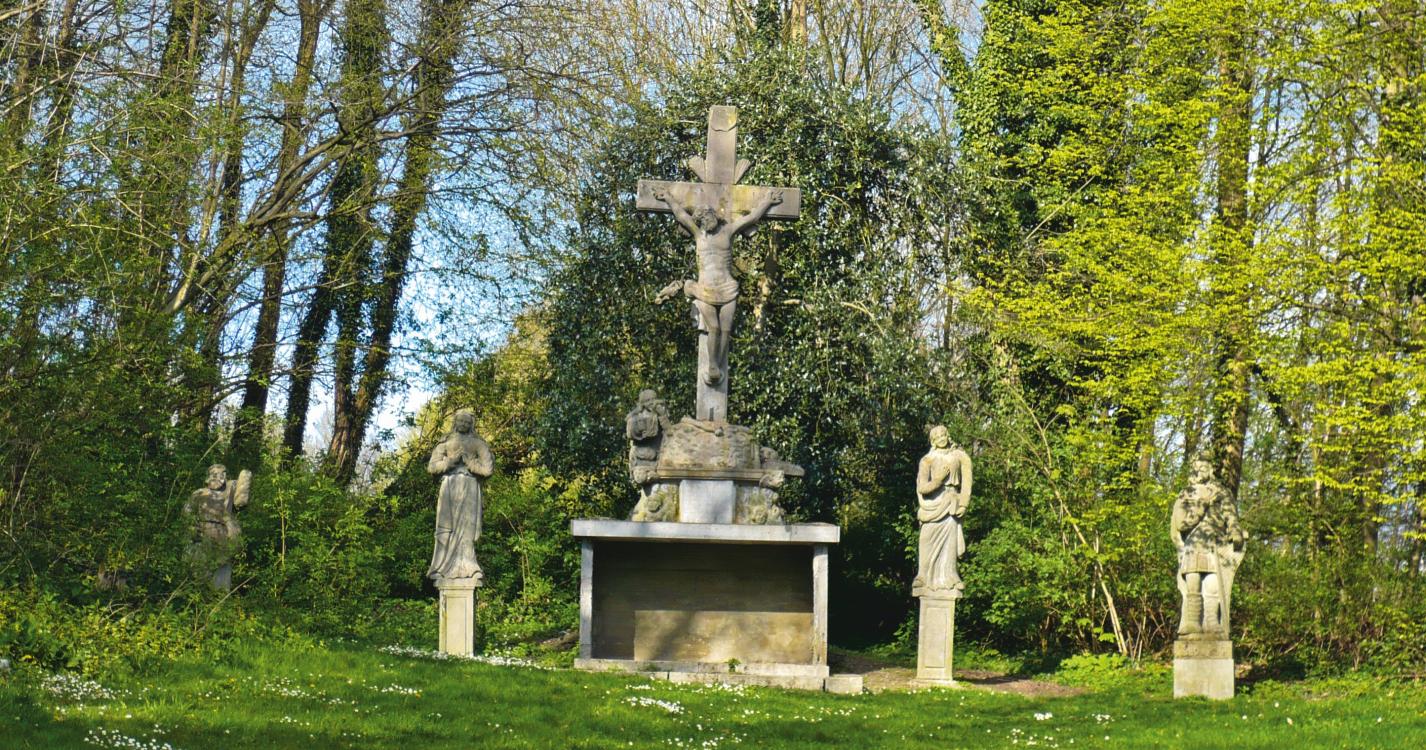 De Mont de Mainvault beklimmen tussen eeuwenoude bomen, betekent zoveel als terugkeren in de tijd. Halfweg verrijst de calvarieberg uit de 18e eeuw. De dorpelingen noemen hem « Mozes », naar een van de afgebeelde personages.