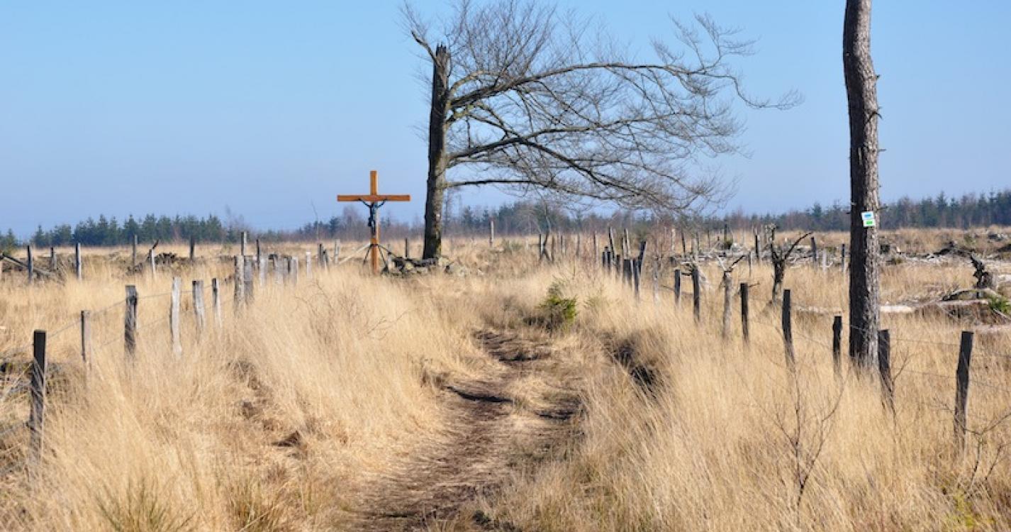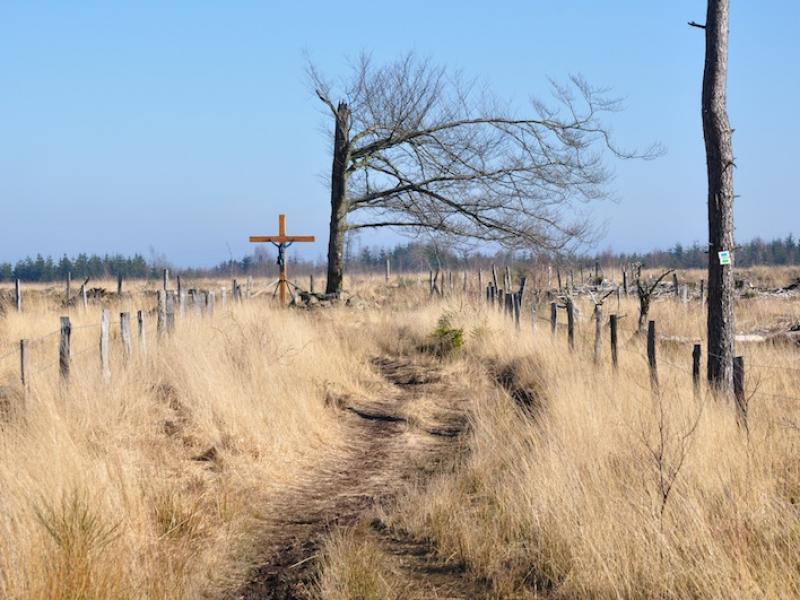 De route start vanaf het kerkplein en neemt U mee naar het hoogste punt van de gemeente Stoumont. U begint direct met een klim waarbij U door de mooie gehuchtjes Roua en Monthouet wandelt. Onderweg ontdekt U het Kruis van Honnay, welk hier ooit neergezet zou zijn door een reiziger die verdwaald was in de sneeuw. Ook de Piramide, volgens de legende een observatiepost voor het leger van Caesar. De "Vecquée" is een brede brandgang, gelegen op de top van de helling. Dit is de oude Romeinse weg die de prins bisschoppen in de middeleeuwen gebruikten om van Luik naar de abdij van Stavelot te komen. Hij geeft vandaag de dag nog steeds grens tussen de gemeenten Theux en Stoumont aan. Om weer naar beneden te komen, volgt U het natuurreservaat Pansîres, doorkruist U bossen en weilanden en ontmoet U het Stenen Paard, een blok kwartsiet met het uiterlijk van een liggend paard.