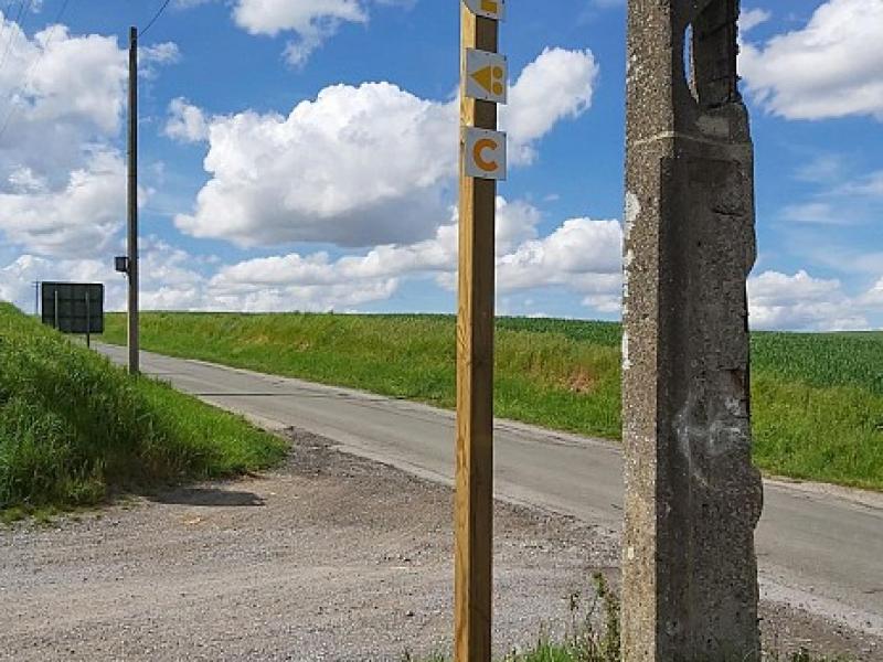U gaat om Bonneville heen over de kleine weggetjes om terug te keren naar het Bois de Stud, naast Andenne.