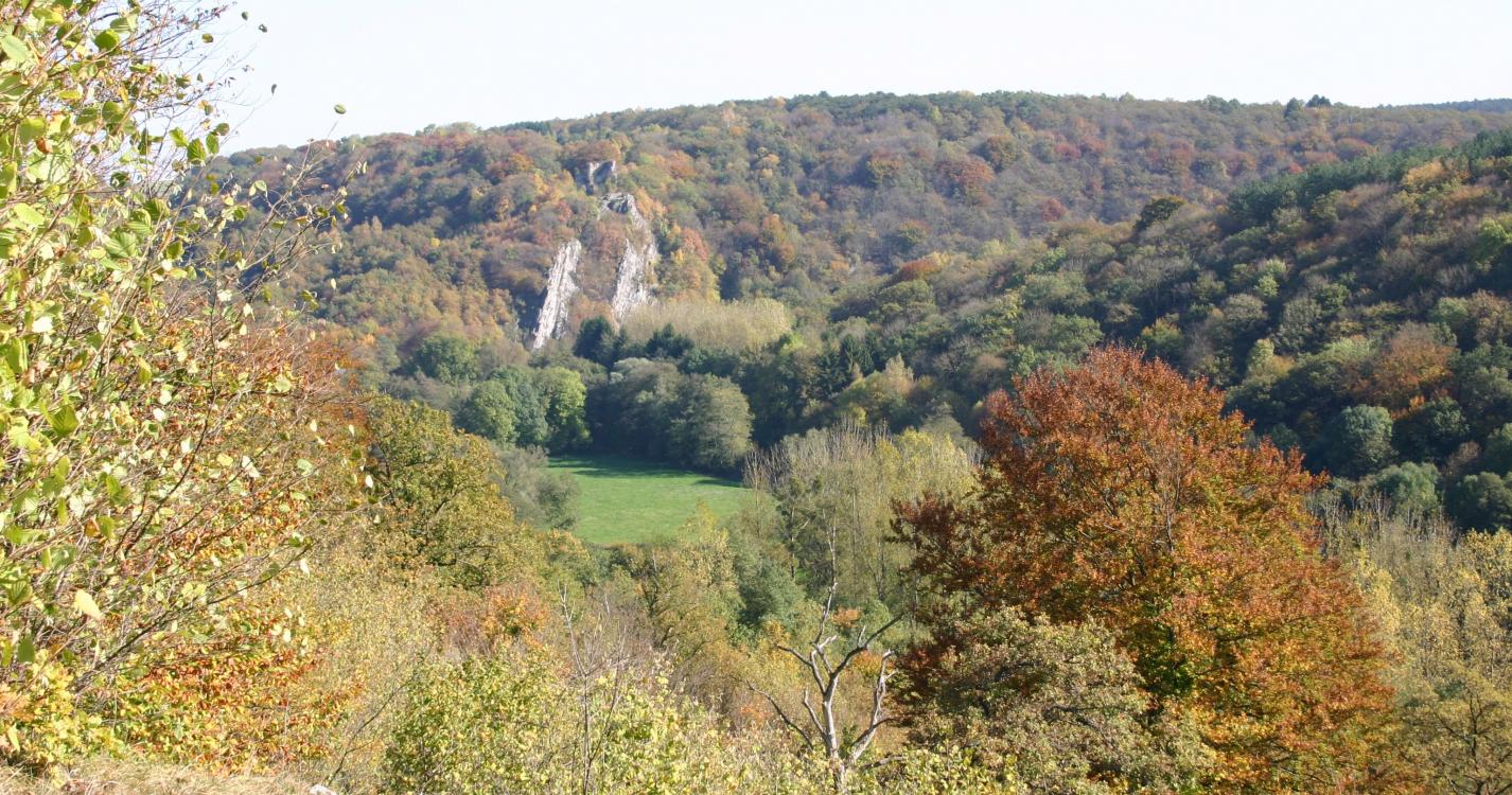 De route aan de zuidelijke kant van het pittoreske dorp Dourbes loopt langs de ruïnes van het kasteel van Haute Roche uit de 14de eeuw. Dit kleine fort ligt bovenaan een uitloper van kalkrots en heeft een poort tussen twee torentjes en een ophaalbrug. Het werd verwoest in 1555 tijdens de oorlog tussen Karel de Vijfde en Hendrik II. Deze site is grotendeels bebost met voornamelijk eiken en haagbeuken die goed gedijen in kalkgrond.