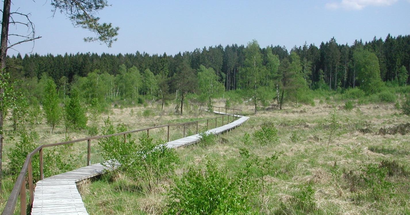 Deze wandeling leid je door sparrenbossen, met een weelderige onderbegroeiing van bosbessen, langs deels verharde banen. Ze gaat vervolgens over in kleine bospaden alvorens het veen te bereiken dat via een knuppelpad doorkruist wordt. Educatieve borden geven uitleg over dit bijzondere biotoop.