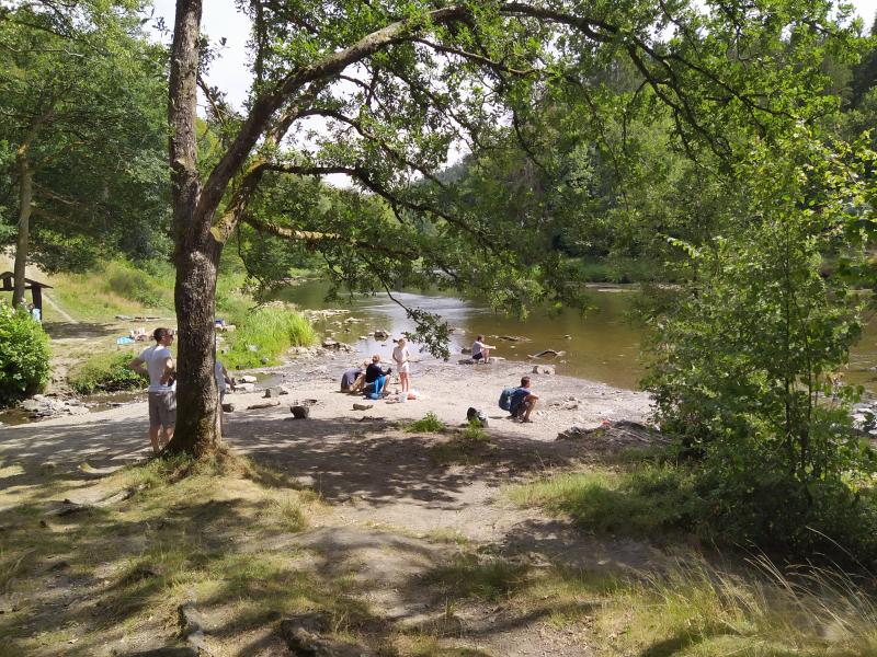 Het hoogtepunt van de wandeling bevindt zich op het laagste punt: de monding van de Antrogne in de Semois. Mooi pad door de loofbossen met enkele mooie uitzichten alvorens aan de badplaats te komen. Dit pad is wel in slechte staat aan het begin. (zomer 2021)
