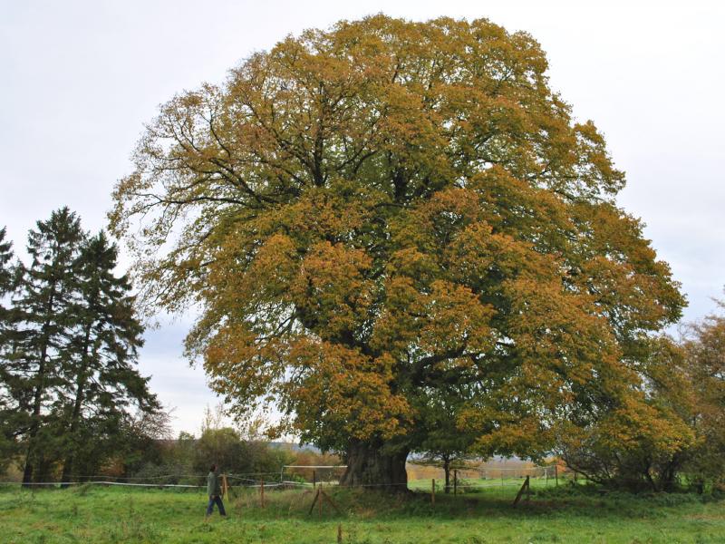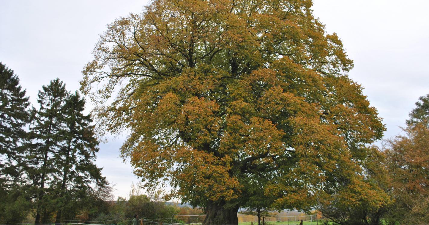 Na 400 m neemt u de weg links die u terugvoert naar de grote lindeboom vanwaar u gemakkelijk het beginpunt kunt bereiken.