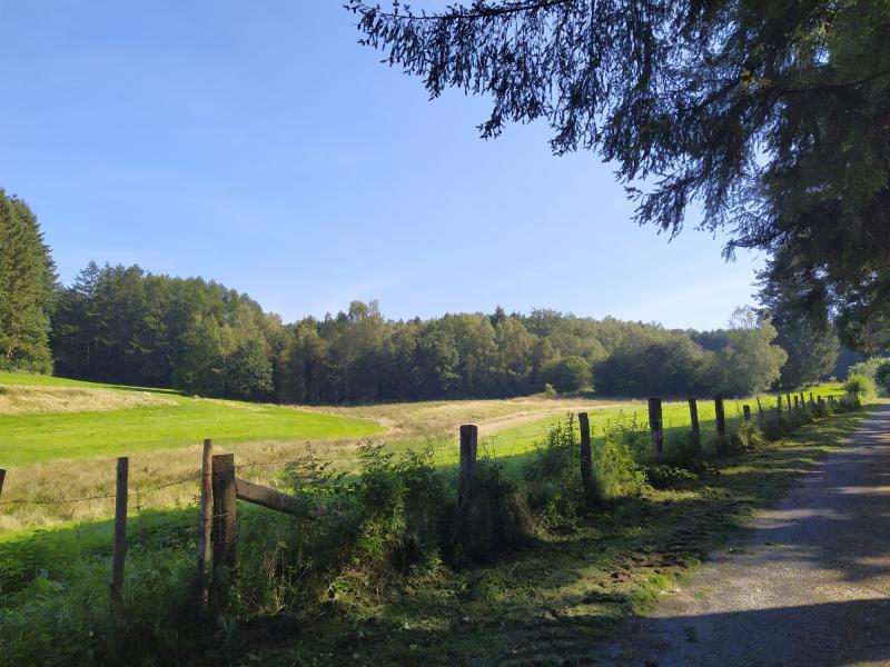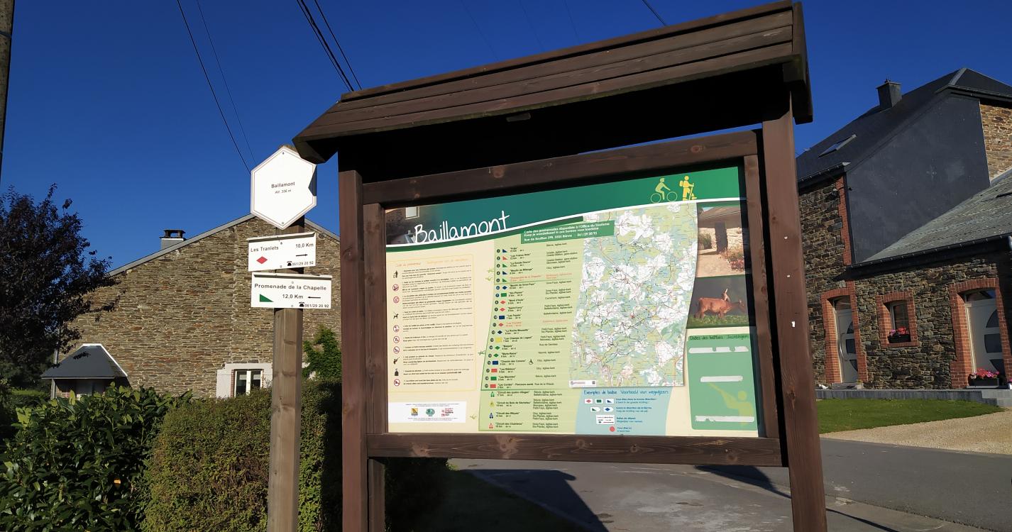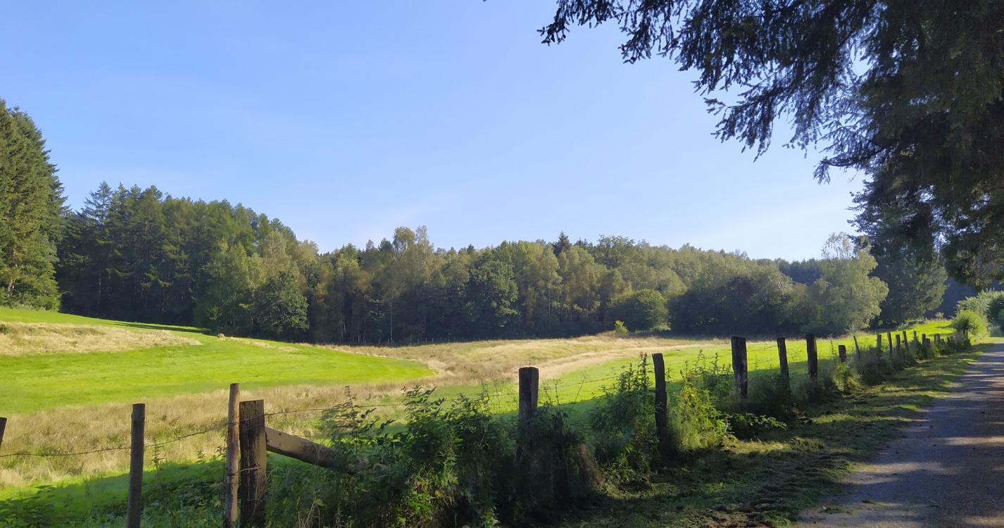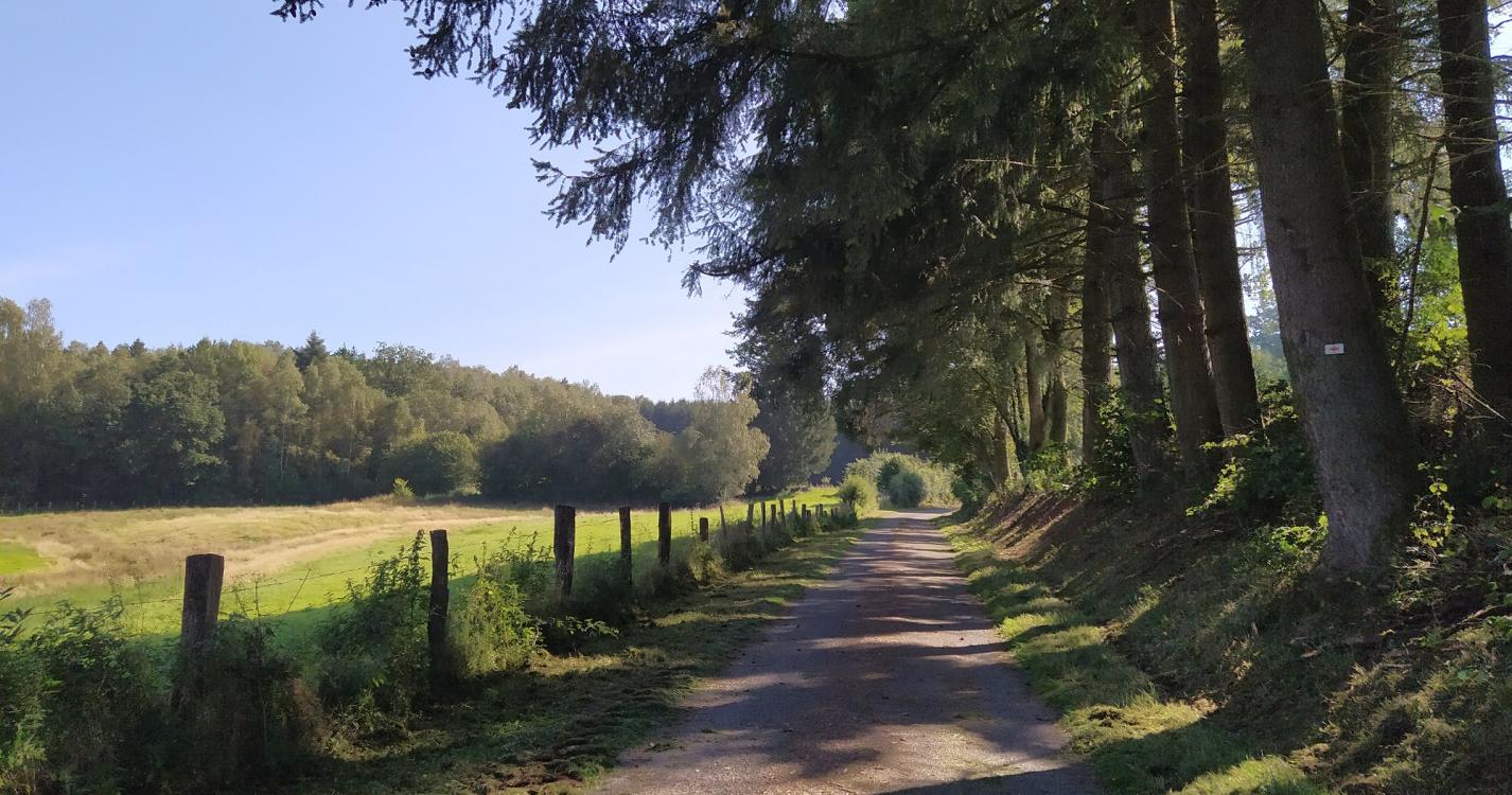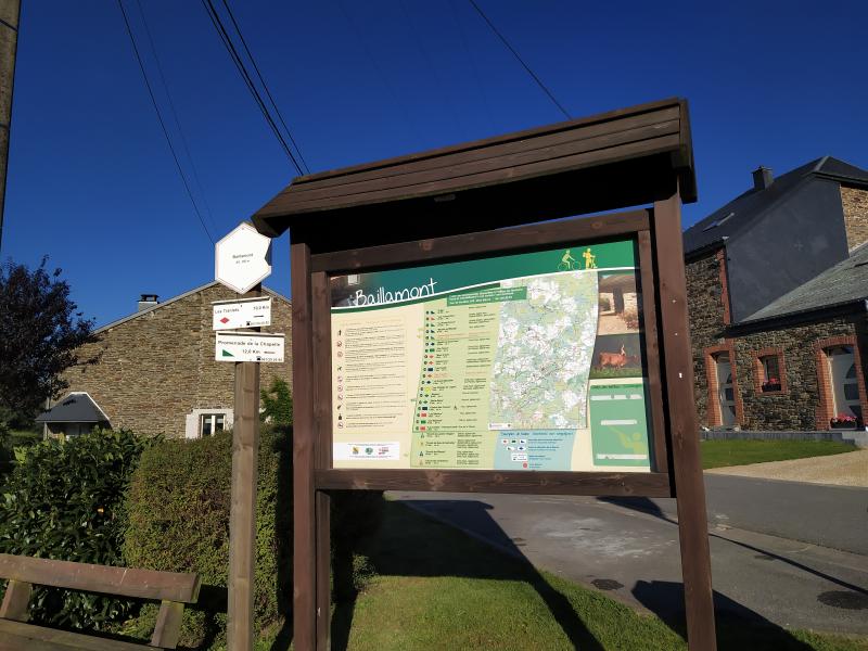 Mooie lus op de hoogten van Baillamont. De wandeling biedt uitgestrekte zichten op de landelijke omgeving. Ze loopt voornamelijk tussen de velden en de sparren plantages met een paar korte stukken door het bos.