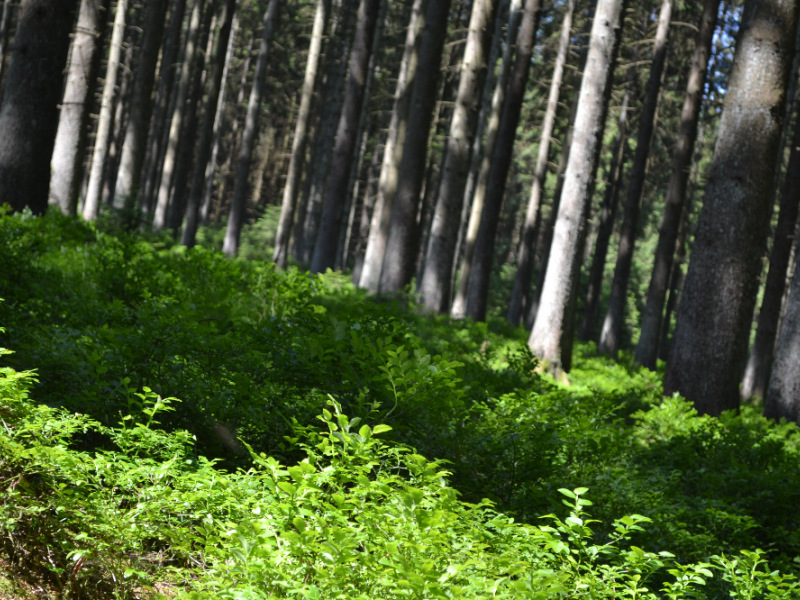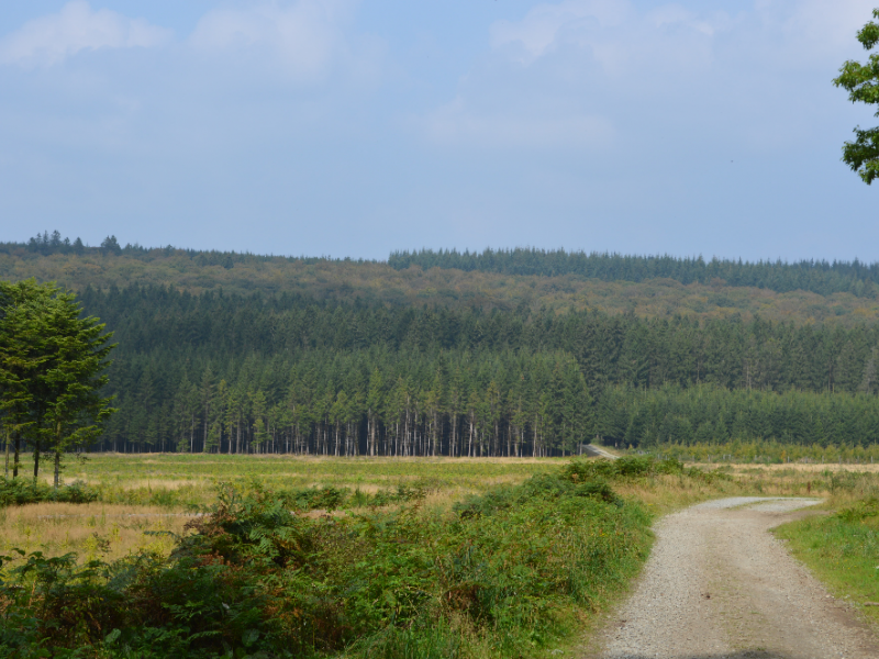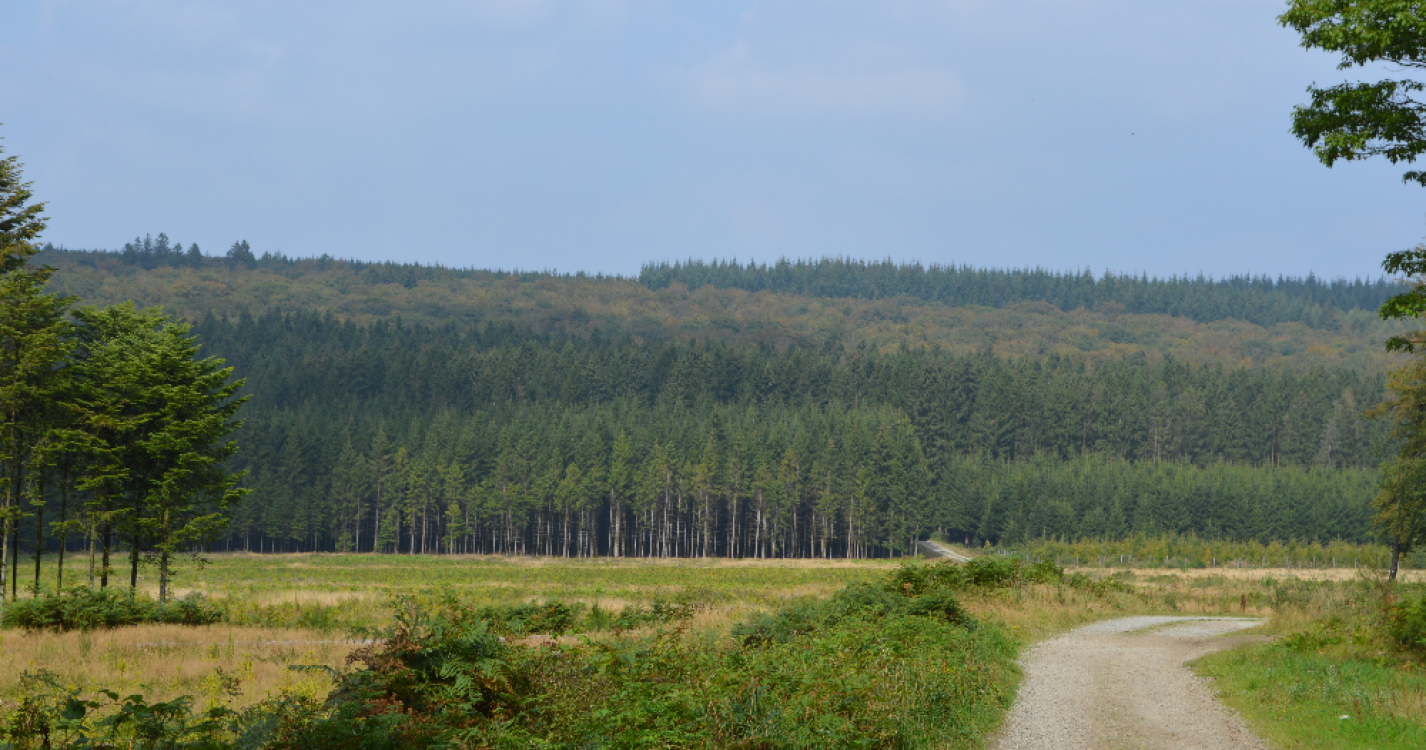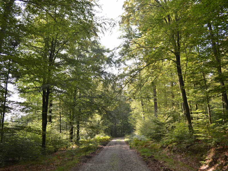 Bijna volledig in het bos. De wandeling biedt enkele stevige beklimmingen/afdalingen.