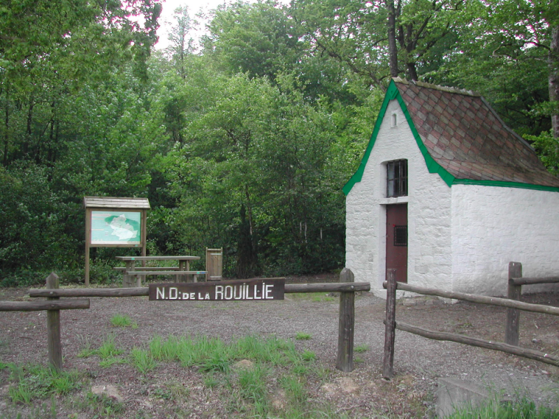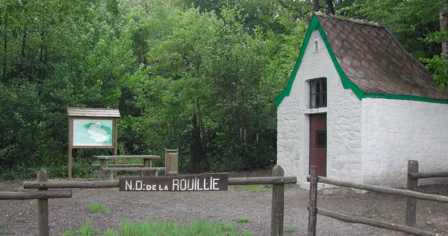 Deze korte wandeling begint aan de rand van het Magoutbos, bij de Kapel van la Rouillie. Dit rechthoekige heiligdom dateert van 1785 en is gewijd aan Notre-Dame de Walcourt. Voor 1876 moest men het onverharde pad langs de kapel nemen en vervolgens de weg van Macquenoise naar Seloignes, om naar Momignies te gaan. In die tijd was dat de enige verbindingsweg.