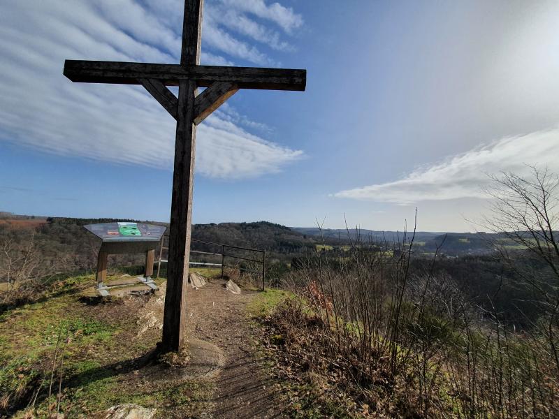 Dank zij deze wandeling ontdek je de dorpen Cugnon en Mortehan met hun rijk patrimonium. Je volgt de Semois om vervolgens naar de grot van Sint-Remaclus en de hoogtes van Cugnon te klimmen. Terug aan de schuilhut gekomen kan je ook nog heen en weer lopen naar het uitkijkpunt bij het kruis waar je een prachtig zicht hebt op de meander van de Semois.