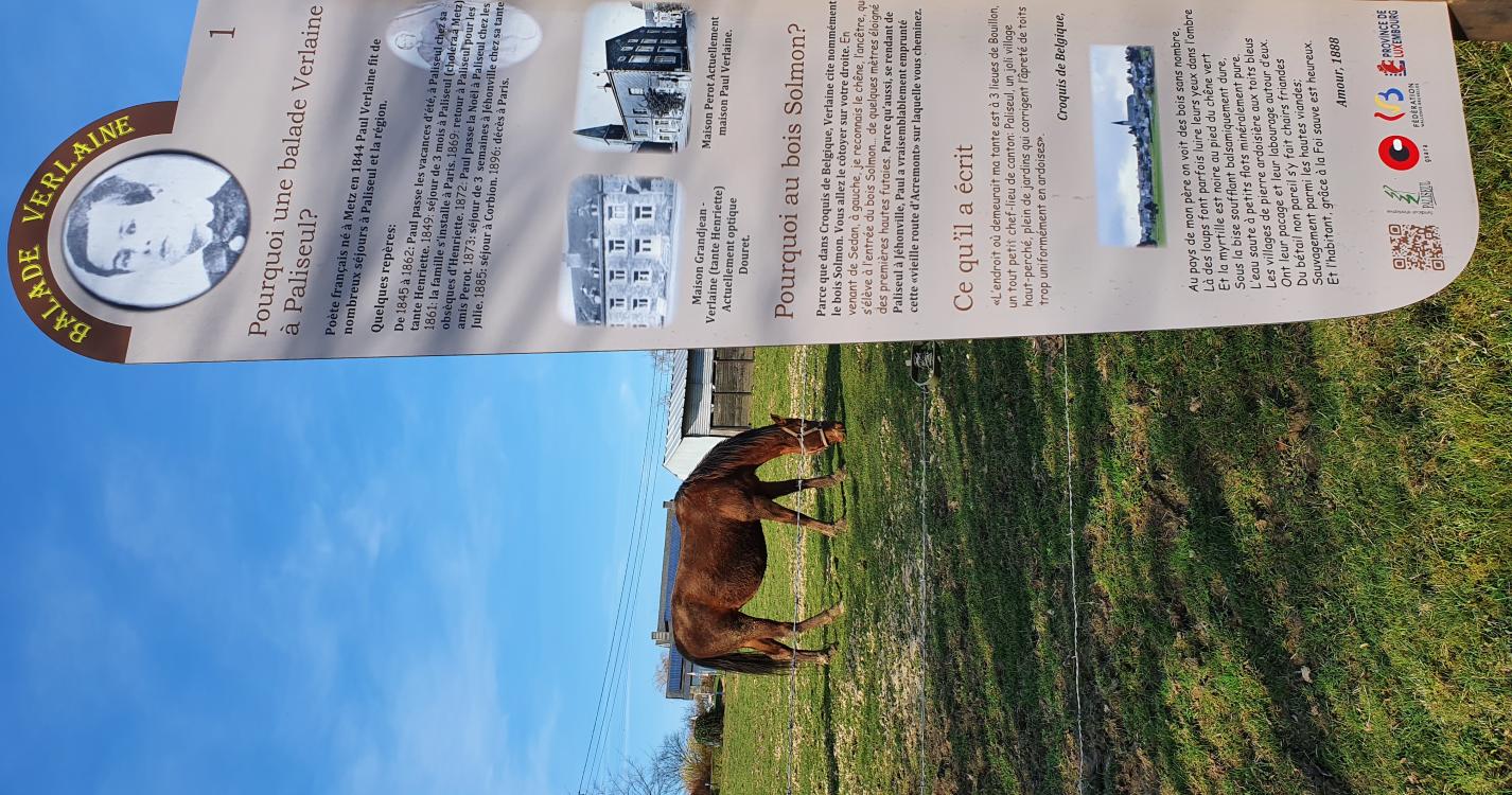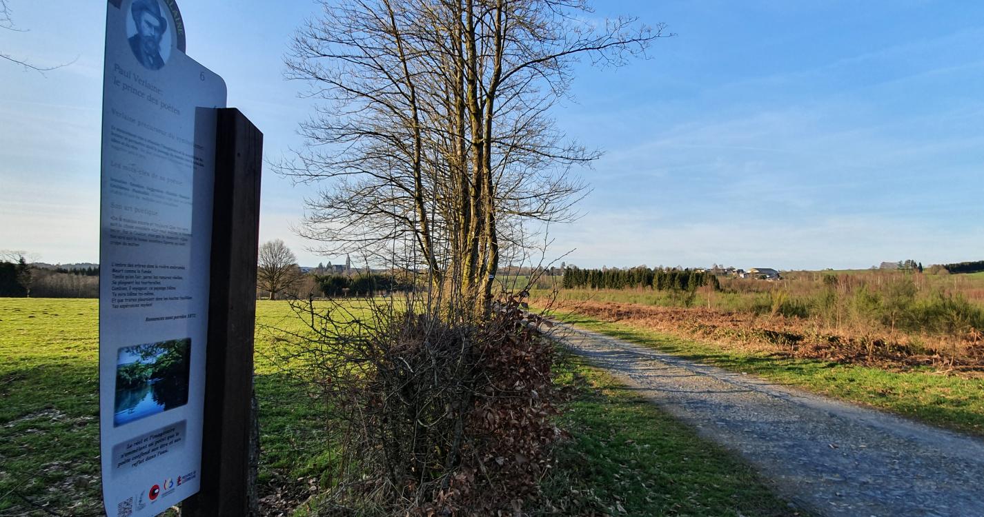 Langs deze gemakkelijke en aangename wandeling vind je didactische panelen betreffende de dichter Paul Verlaine. De open landschappen bieden zowel zicht op de bossen als de velden en eveneens op de omringende dorpen. Toegankelijk voor kinderbuggy’s.