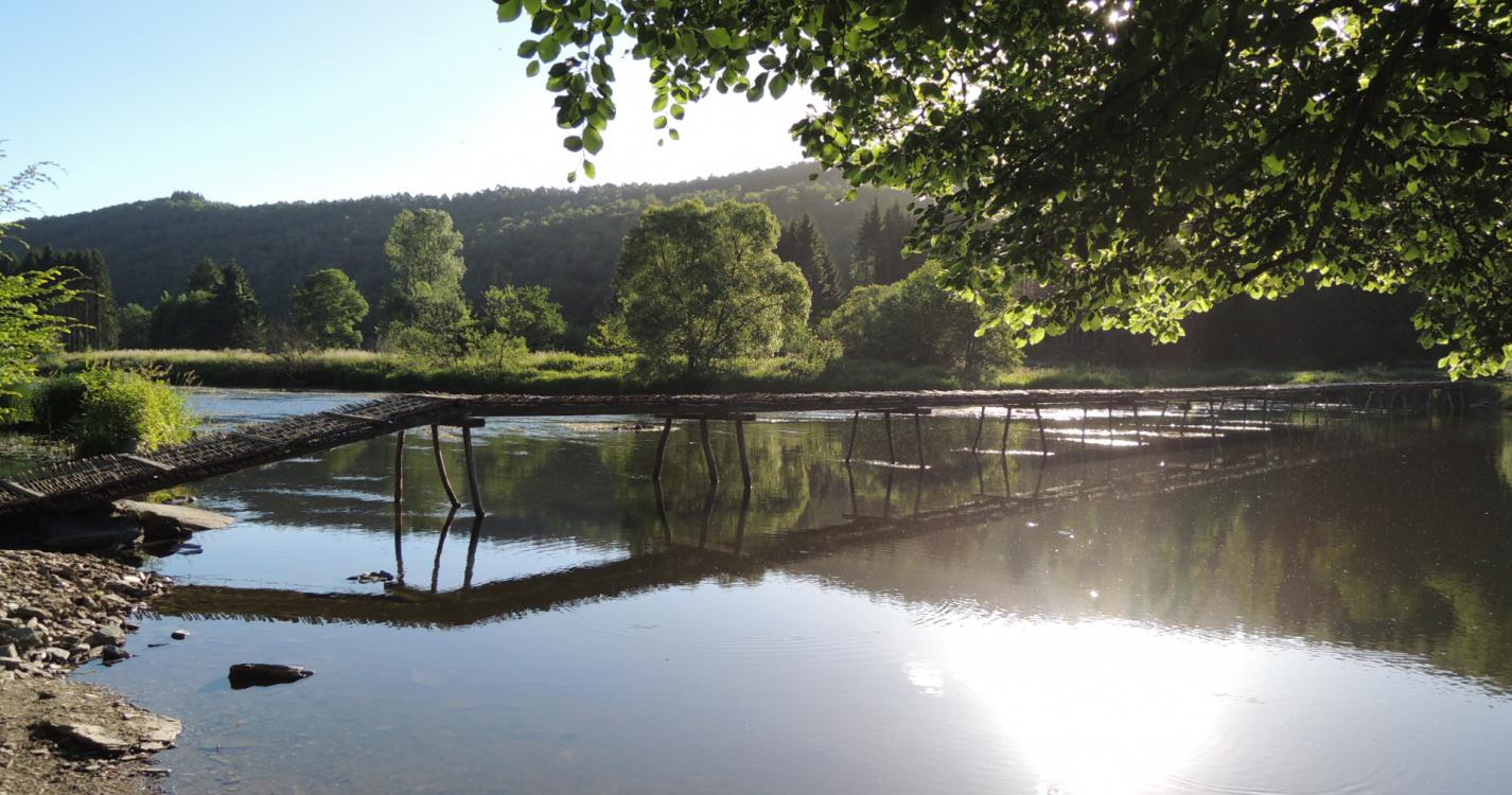 Deze emblematische wandeling leid je naar de Pont de Claies. Langsheen het brede bospad dat naar het bruggetje leidt vind je didactische borden die de geologische geschiedenis van de streek in beeld brengen. Het bruggetje van gevlochten hazelaartakken werd vroeger gebruikt door de inwoners van Laforêt om hun velden aan de overkant van de rivier te bereiken. Het wordt nog elke zomer geplaats voor de wandelaars.