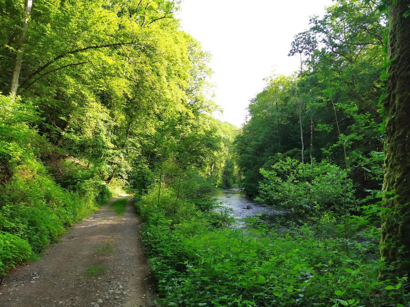 De route loopt voornamelijk door het bos en over rustige wegen.