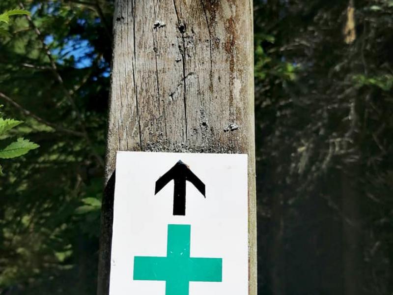 Il faut traverser la route et le départ se fait à l’entrée du bois.