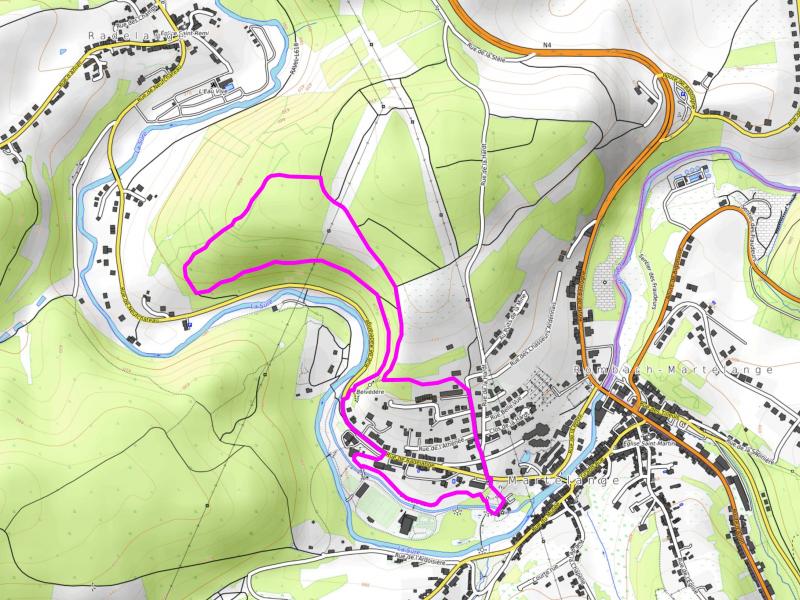 De tocht van de Belvédère brengt u op de Noorder heuvel van de vallei van de Haute-Sûre, “la Hardt” genoemd, Goed gevonden naam daar de straat zeer stijl is. Deze laatste is de voormalige nationale route Bruxelles-Luxembourg. Uw beklimming wordt beloond met het prachtig uitzichtpunt op de vallei van de Sûre (gehucht : Rommer Schleid).