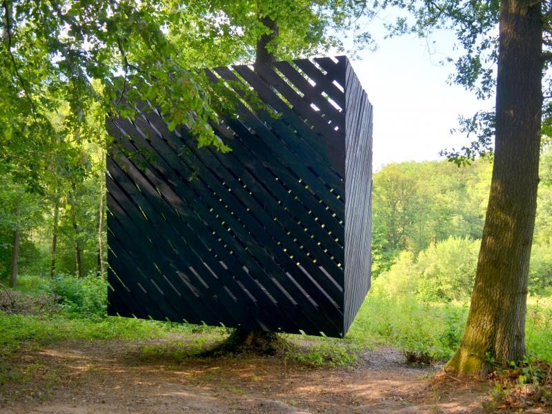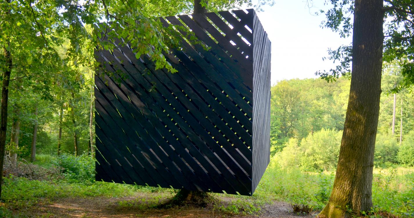 > Maak een kleine omweg om het artistieke onderkomen " Lévitas " in het Bois des Aunes te ontdekken.
