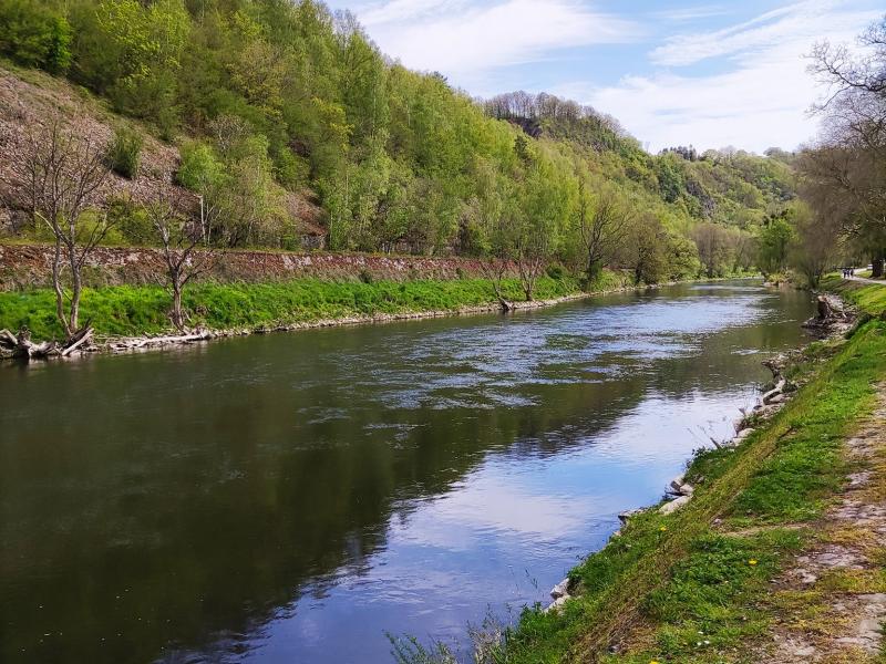 il faut traverser le chemin de fer et prendre à droite vers l’Ourthe.