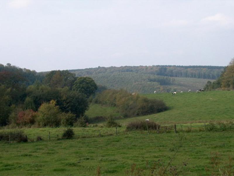 De wandeling vertrekt bij de kerk in Harzé in de richting van Werbomont en het kruis Baptisse. Hij komt uit bij het herdenkingsmonument en gaat hiervandaan naar het bos van Pouhon en de Pouhon van Harzé (pouhon = bron). De route gaat richting Trou de Bosson (gehucht in de gemeente Ferrières) en komt uit in het grote bos van Berleur. Uiteindelijk komt hij weer in de gemeente Aywaille terug in het dorp Ernonheid. Hier loopt hij in de richting van Levée (kastanjeboom en uitkijkpunt) en het kruis Sint Christophe. Terug naar de kerk via Mahousseux en het herdenkingsmonument. De kerk wordt bereikt door dezelfde straten in omgekeerde richting terug te lopen. Percentage bos: 41%.