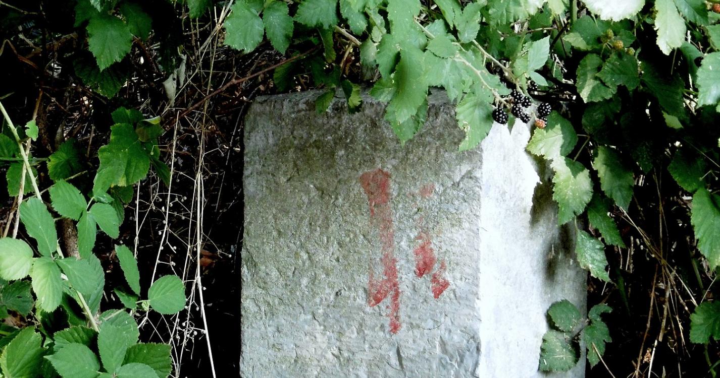 vereinzelt auch noch mit kreisförmigem blauem Klecks gekennzeichnet