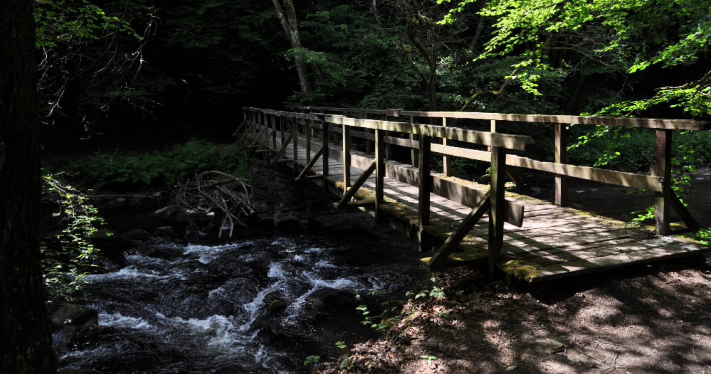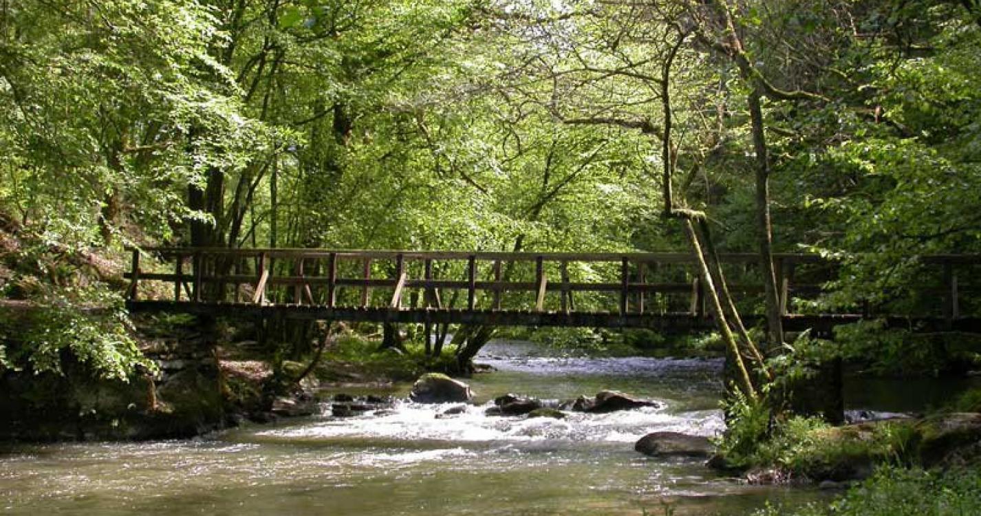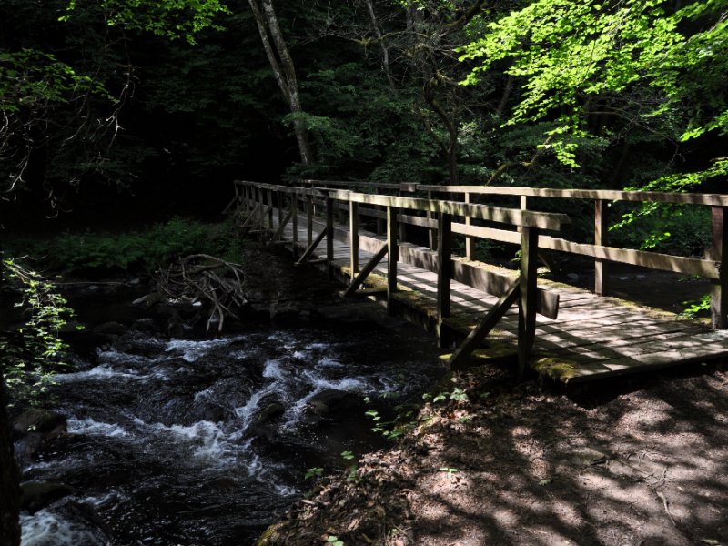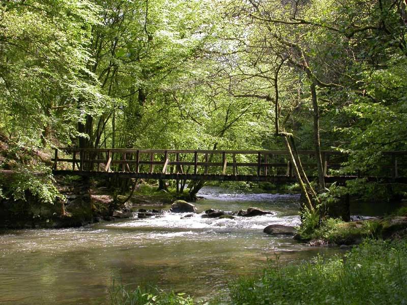Deze kleine mooie voetgangersbrug van hout werd meerdere malen gereconstrueerd wegens overstromingen van de Lesse.