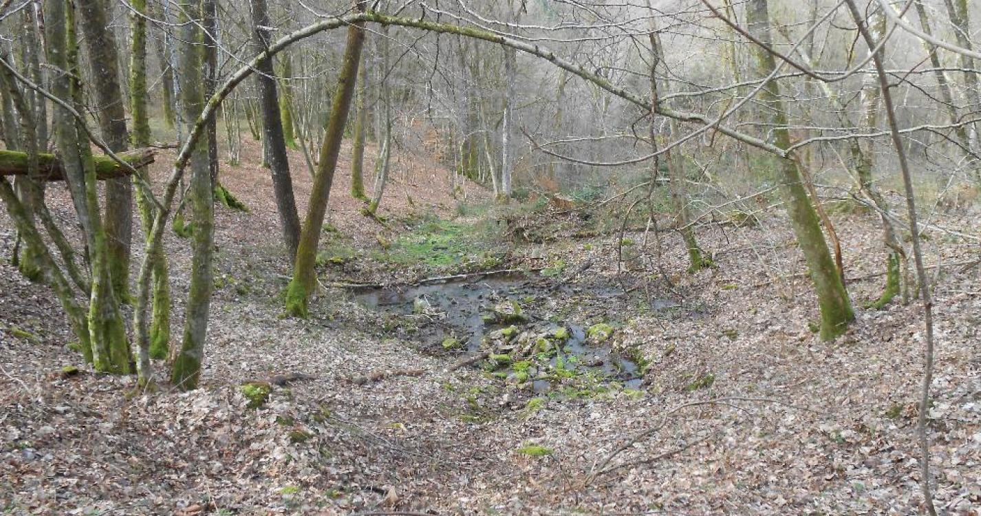 Kleine vijver op 25 m van de weg. Deze kleine beboste waterputten zijn bevoorrechte plekken voor amfibieën en voor alle wilde dieren.