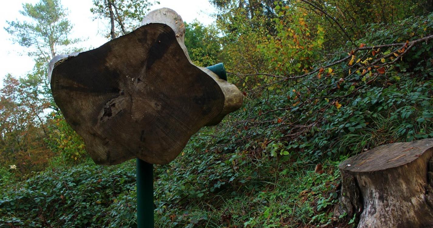 ? Tijdens deze wandeling kunt u zien dat zich op enkele typische bomen een gepyrogra-veerd plaatje bevindt. Hierop ziet u de vorm van het blad van de desbetreffende boom.