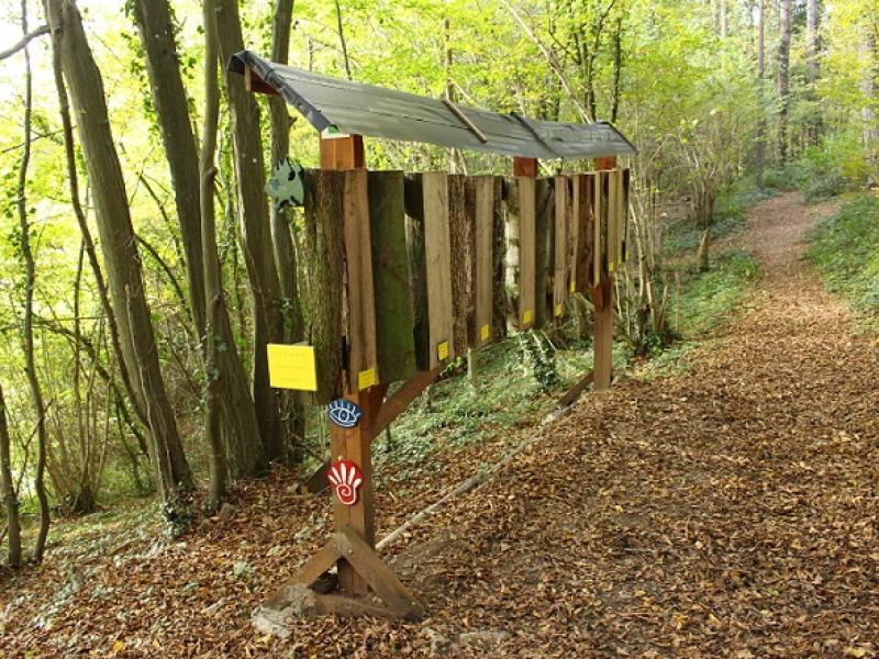 ADEM diep IN, laat uw zin-tuigen werken, loop langs “LE MONT DES SENS” en neem de tijd om de natuur rondom U GADE TE SLAAN, AAN TE RA-KEN, TE VOELEN EN TE RUIKEN.