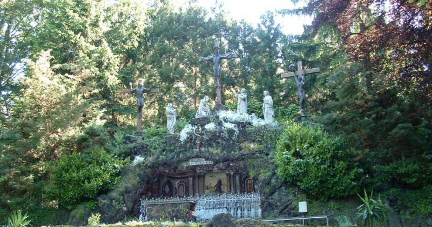 Bostracé dat uitkomt op de Mariasite van Moresnet-Chapelle en het monumentaal calvarie.