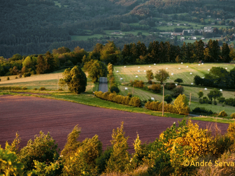 Zeer afwisselende wandeling met vele typen landschappen. Direct bij vertrek klimt U naar "le Thier" (hoogte 380m.) en gaat daar het bos in. Waarna U afdaalt naar de Amblève via een pad op de rechteroever van de beek "Fagne-Naze". Dan slingert het pad boven de Amblève naar de "Heid d'Aze". Daal vervolgens af naar de oude molen van Lorcé. Hoogte 247m. Ga hier naar boven in de richting van Chession (via het bospad op de heuvel) naar een oude school. Daal dan af richting de Lienne tot U bij een rots komt, die uitkijkt over de rivier. Ga vervolgens over het hoge pad en keer terug naar het dorp Chession, welk U doorkoopt. Op de top van het dorp gaat U rechtaf een bospad in welke afdaalt naar de vallei van Bru.
