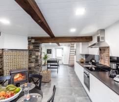 Kies voor een verblijf in dit typische vakantiehuis, een voormalige boerderij in de buurt van Houffalize met drie lichte kamers, een houtkachel, een terras met barbecue ...Graag back to basics? Dan ben je hier aan het juiste adres. Dit charmante vakantiehuis bevindt zich in een oude boerderij uit 1890. Het gebouw werd prachtig gerenoveerd: de authentieke details en oorspronkelijke architecturale elementen (Ardense steen, houten balken, gewelfd plafond ...) werden zoveel mogelijk behouden. Wat er wel veranderd is sinds de 19e eeuw, is de lichtinval in het huis. Omdat er nu zoveel licht binnenkomt, heerst er in alle ruimtes een aangename, warme en gezellige sfeer.Ook de ligging is fantastisch, vlak bij de  brouwerij van Achouffe . Daar kun je van een heerlijk biertje genieten en het hele jaar door, zelfs in de winter,  een prachtige wandeling maken!De typisch Ardense sfeer in een al even typisch huisje: dat vind je in dit gezellige en charmante toevluchtsoord. De houtkachel wordt je beste vriend op koude avonden en ook aan de voetbaltafel zul je veel plezier beleven.