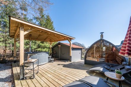 Infraroodcabine (4pers), Jacuzzi (4 pers), Ligstoelen x 2