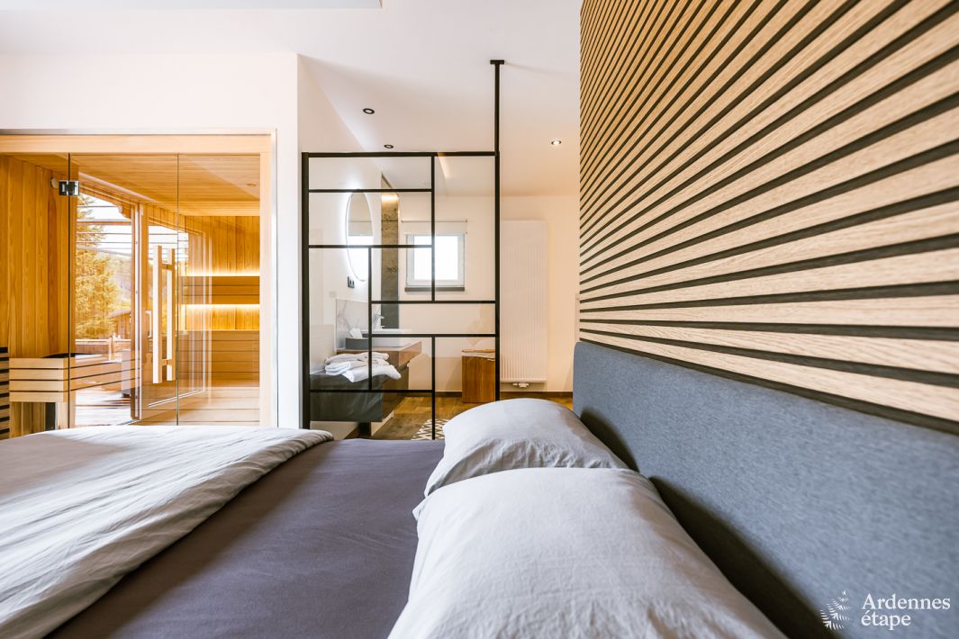 Ideaal voor een romantisch verblijf in de Ardennen. Alles wat je van een wellnessverblijf verwacht was aanwezig, een echte sauna, een jacuzzi die je niet zelf moet warm stoken. Een echte hammam is uitzonderlijk! Recente woning die van alle moderne nutsvoorzieningen is voorzien. Lekkere welkomstgeschenkjes waren ook een verrassing. Zeer vriendelijke, gedienstige eigenaar. En 'last but not least': Kraaknette woning waarvan het water vd jacuzzi na elke reservatie ververst wordt. Merci Frédéric!