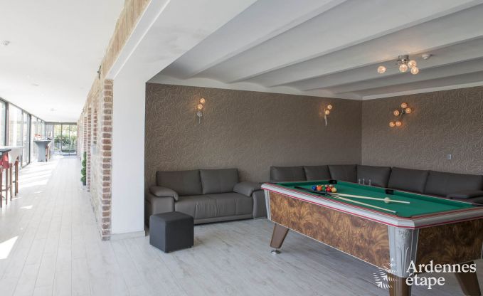 Jong en oud zullen onder de indruk zijn van de talrijke luxevoorzieningen: binnenzwembad, sauna, jacuzzi, recreatiezalen en een banketzaal (aansluitend op de woning). Liefhebbers van gastronomie zullen uiterst tevreden zijn met de professionele keuken terwijl de overige gasten gecharmeerd zullen zijn door het domein en zijn vijver. Dit tot groot jolijt van de kinderen, die trouwens met een boot op de vijver kunnen. Ideaal voor een familieverblijf.