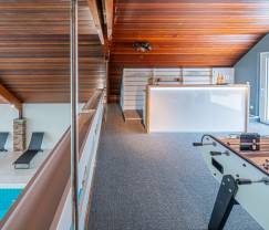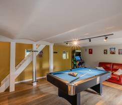 De villa biedt een scala aan recreatieve mogelijkheden. Je kunt genieten van een spelletje darts, kicker, elektronische caféspelen of biljart, ontspannen bij de houtkachel of genieten van een drankje aan de bar. Buiten vind je een privéterras en tuin, ideaal voor zomerse barbecues op de houtbarbecue. En als het weer het toelaat, kun je een duik nemen in het binnenzwembad.