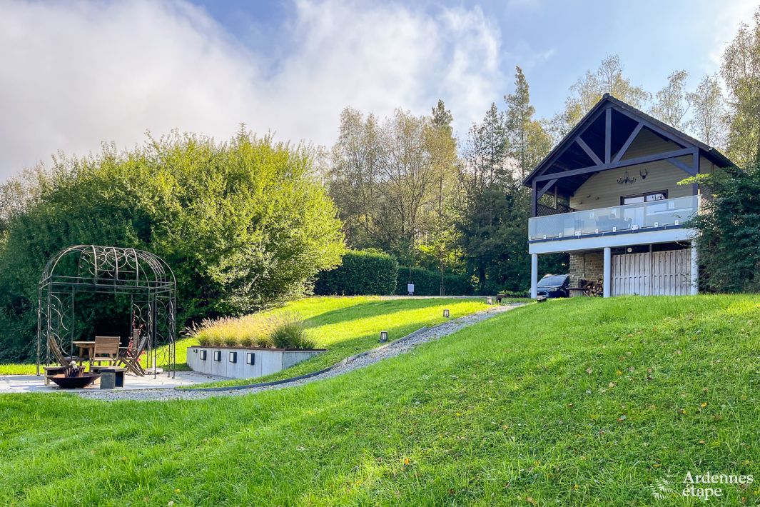 Dit prachtige 4-sterren chalet wacht op jou in Aywaille. Geniet van ultramodern comfort met een infraroodcabine en jacuzzi in een prachtige natuurlijke omgeving.
