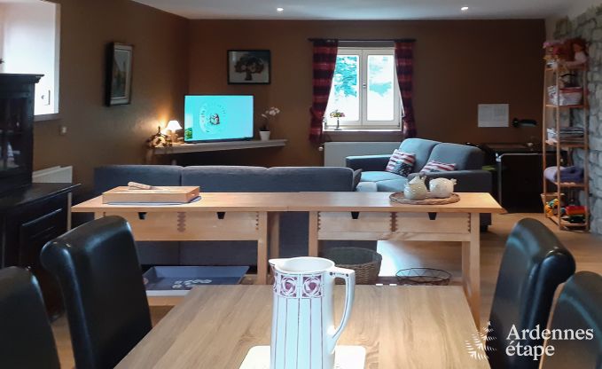 Je zult dit schitterende gebouw aantreffen in de buurt van Aywaille in het hart van een dorpje. Authenticiteit en moderne toetsen gaan er verbazingwekkend goed samen. Het zal niet lang duren alvorens de magische werking van deze inrichting, die de eigenaars heel zorgvuldig in de hand hebben gewerkt, je in zijn greep heeft. Alles werd in het werk gesteld om de vertrekken zo aangenaam mogelijk te maken. Je zult kunnen genieten van een sierlijke en mooi gedecoreerde leefruimte met een zithoek en zijn mooie muur uit natuursteen. Het gedeelte dat dient als eetzaal bestaat uit een gezellige ruimte met een open keuken, die volledig uitgerust is: perfect voor het slagen van je toprecepten. Je zult in één van de 2 slaapkamers slapen waarvan er één is uitgerust met een stapelbed, ideaal voor de kinderen. Ook aan de tuin werd veel zorg besteed: in de mooie privétuin beschik je over tuinmeubilair en een barbecue. Je vindt er al het nodige om met volle teugen van het idyllische kader te genieten dat je omgeeft.