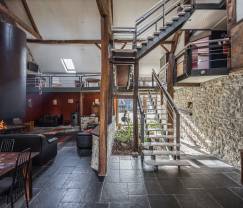 Deze prachtige, volledig gerenoveerde natuurstenen boerderij die zijn eeuwenoude balken behield, ligt in het hart van het kleine Zwitserland van het noorden. In de woonkamer creëerde de eigenaar een origineel geheel met een mezzanine, een spectaculaire open haard en een trap die in de ruimte lijkt te zweven. Een geweldige plek voor geanimeerde gesprekken of memorabele partijtjes gezelschapsspel tijdens lange avonden aan het haardvuur.