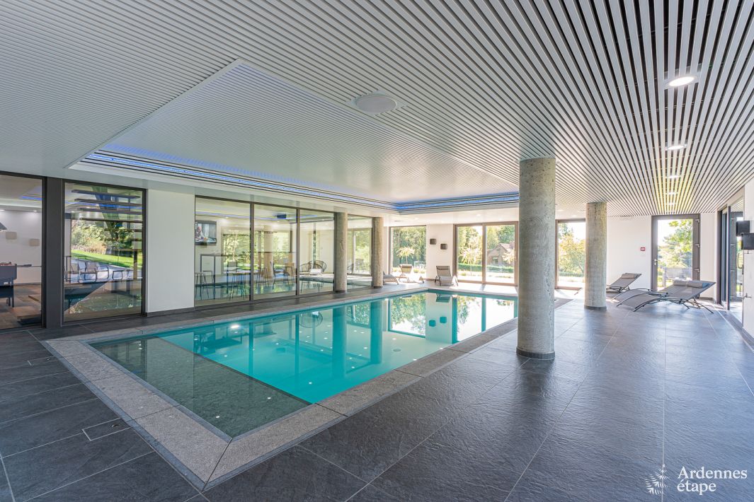 Lekker lang uitslapen in één van de 5 familiale slaapkamers met privébadkamer, heerlijk ontbijten met zicht op het groen, gezellig aperitieven in de bar terwijl je een oogje kan houden op de kids die ravotten in het binnenzwembad, op krachten komen in de jacuzzi voor 6 personen... In deze prachtige villa kan je terecht voor een droomvakantie. Onze persoonlijke favoriet? Het prachtig terras met panoramisch zicht, waar je lekker lang kan bijpraten en het extra gezellig kan maken rond een heerlijke plancha (op houtskool). Je verblijft midden in een groene oase: extra rustgevend… Ideaal om je volledig te herbronnen!