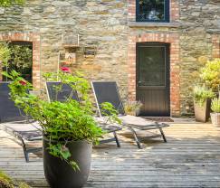 Deze opmerkelijke vakantiewoning voor 18 personen is heel ruim en met zorg ingericht. Hier ervaart iedereen een excellent comfortniveau. De 6 slaapkamers zijn elk voorzien van kwaliteitsvolle bedden, een mooie inrichting en een eigen badkamer. Het originele karakter van dit gebouw werd behouden dankzij de vele rustieke elementen die de charme van weleer uitstralen. Zo heeft de grote leefruimte stenen muren en zichtbare balken, wat zorgt voor een heel gezellige sfeer. De houtkachel geeft warmte aan je winteravonden en in de grote eetruimte kan je met de hele groep samen tafelen. Geniet van de volledig uitgeruste keuken die even charmant is als functioneel. Ook aan ontspanning en plezier werd hier gedacht. In de wellnessruimte kom je tot rust in de sauna, en buiten is eveneens een plek die goed is om te ontspannen en te relaxen. Tijdens een barbecueavond in de zomer kan je hier genieten van de omgeving, want er is een barbecue en een groot terras ter beschikking van de gasten.