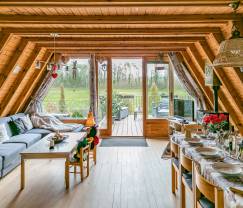 Zin in wat quality time met familie en/of vrienden? Kom hier genieten van de rust, en van elkaar! Ga gezellig aperitieven of barbecueën op het mooie terras met zicht op de omliggende bossen, terwijl de kinderen zich vermaken op de tuinspellen. Zijn de temperaturen al flink gedaald? Dan doe je gewoon een extra trui aan! Of geniet je binnen, want vanuit de knusse zetel is het zicht net zo mooi. En dankzij de grote ramen geniet je overal in het huisje van een prachtige lichtinval. Wegdromen bij een rustgevend zicht en een knisperend vuur? Gezellig! De sfeervolle open leefruimte met keuken nodigt uit om lekker te koken. Wat er verder niet mag ontbreken aan je vakantie? Een toffe spelletjesavond, natuurlijk.