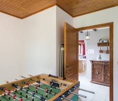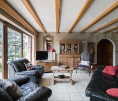 Deze vakantiewoning ligt in een rustige straat tussen de velden en combineert een rustieke inrichting met een moderne stijl voor de 4 slaapkamers en 2 badkamers. In de leefkamers overheersen natuursteen en massieve houten meubels. Beneden is er een speelkamer met een voetbaltafel, een volledig uitgeruste keuken, een ruime zitkamer en een eetkamer. Daarnaast zijn er ook 2 slaapkamers en 1 badkamer. Altijd handig voor personen met beperkte mobiliteit. Alle ruimtes genieten een mooie lichtinval. Boven bevinden zich nog eens 2 slaapkamers en een badkamer. In de ondergrondse beveiligde stalling kan je zowel je fietsen als motorfietsen in alle gemoedsrust kwijt. Buiten beschik je over een tuin van 2800 m² met bomen en struiken en een petanquebaan en een overdekt terras van 55 m² met een barbecue.