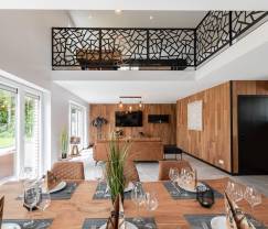 Met veel zorg afgewerkt en stijlvol ingericht vakantiehuis met grote tuin en terras, en volop wellness- en ontspanningsfaciliteiten.