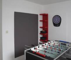 Je wordt onmiddellijk verleid door de charme van dit mooie, tot in de details doordachte verblijf, dat een opmerkelijke inrichting heeft. Het vakantiehuis is ideaal voor een vakantie met de familie. Je beschikt over een ontspanningshoek met infraroodcabine en voor de allerkleinsten is er een speelkamer met darts, biljarttafel en een Nintendo Wii console. Iedereen zal zich hier snel thuis voelen, want er zijn 4 slaapkamers en 3 badkamers. In totaal kunnen dus 9 personen genieten van het optimale welzijn in deze vakantiewoning. De badkamer op de benedenverdieping is bovendien uitgerust met een bubbelbad voor 2 personen. De woonkamer is met zijn gezellige zithoek en grote eetkamer met houtkachel werkelijk prachtig. Hier kan je heerlijk genieten van een warme maaltijd na je uitstapjes! Al het nodige om je recept te doen slagen vind je trouwens terug in de zeer handige en uitgeruste keuken. En in de zomer kies je voor een barbecue op het terras.