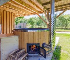 Nieuwe gedeelte is heel mooi, oudere gedeelte is minder aangenaam. Tip deur nieuwe badkamer nakijken, gaat moeilijk open. Andere plaats voor afval te zetten, nu moet je steeds door modder. Producten voor hottub.