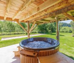 Rustig gelegen met een zeer mooie tuin en een prima houtgestookte hot tub (met jets etc.)